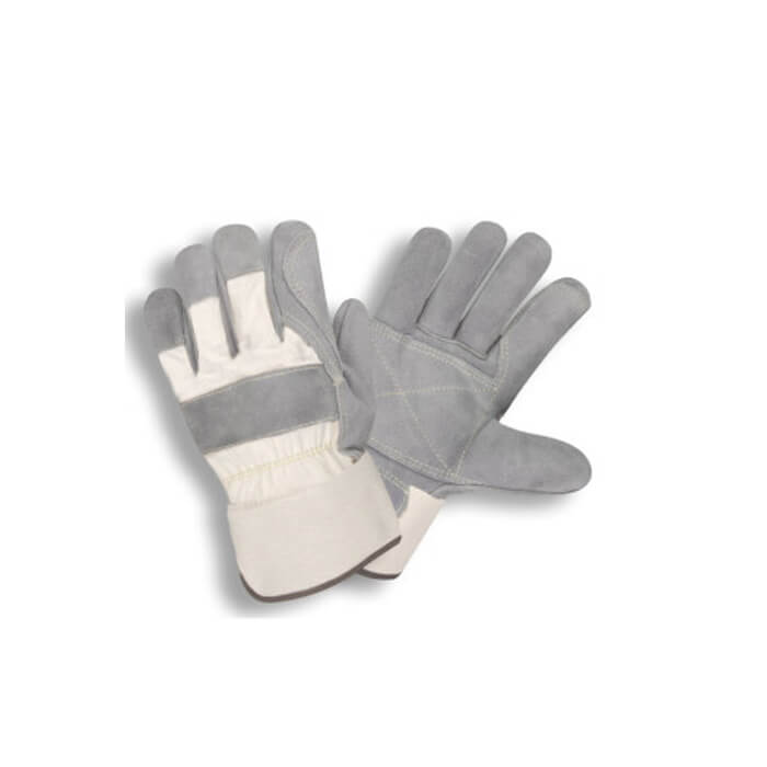 Side división palma de cuero doble, Volver lienzo blanco, Gunn Patrón, Aramid Sewn, Blanco de 2,5 pulgadas de goma Manguito de seguridad.